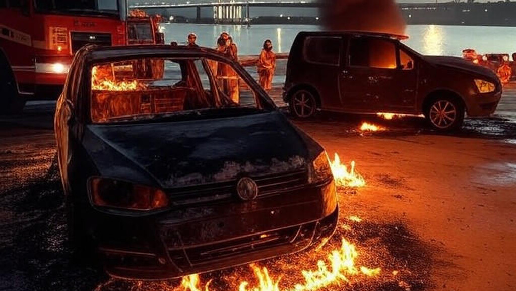 Um incêndio atingiu dois veículos estacionados na orla do Lago Paranoá, próximo à Ponte JK, no Distrito Federal, causando alarme entre os frequentadores da área. O incidente ocorreu no domingo, 22 de dezembro, e envolveu um VW Fox preto, que foi completamente consumido pelas chamas, e um Ford Fiesta, também preto, que emitia intensa fumaça. A cena gerou preocupação generalizada devido à densa nuvem de fumaça que se espalhou pela região, interrompendo o fluxo normal de pedestres e motoristas que passavam pelo local. O Corpo de Bombeiros Militar do Distrito Federal foi acionado às 15h08 e enviou duas viaturas para conter o fogo, priorizando a segurança da população ao isolar o perímetro e utilizar linhas pressurizadas de água no combate às chamas.